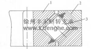 回轉(zhuǎn)支承本身的加工質(zhì)量受制造精度、軸向間隙和熱處理狀態(tài)的影響很大,這里容易忽略的因素是熱處理狀態(tài)的影響。顯然,要使?jié)L道表面不產(chǎn)生裂紋及壓陷,就要求滾道表面除具有足夠的硬度而外,還必須具有足夠的硬化層深度和心部硬度。據(jù)國(guó)外資料介紹,滾道硬化層深度應(yīng)隨滾動(dòng)體的增大而加厚,最深可超過(guò)6 mm以上,心部硬度也應(yīng)較高,這樣滾道才會(huì)有較高的抗壓潰能力。所以回轉(zhuǎn)支承滾道表面淬硬層深度不足,心部硬度偏低,也是造成其損壞的原因之一。