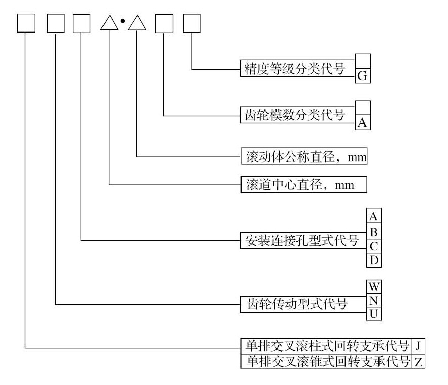常用回轉(zhuǎn)支承基本型號(hào)規(guī)格舉例: