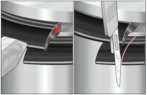 ■小心地將密封型材壓入配件空間,留出超過(guò)約5%的長(zhǎng)度