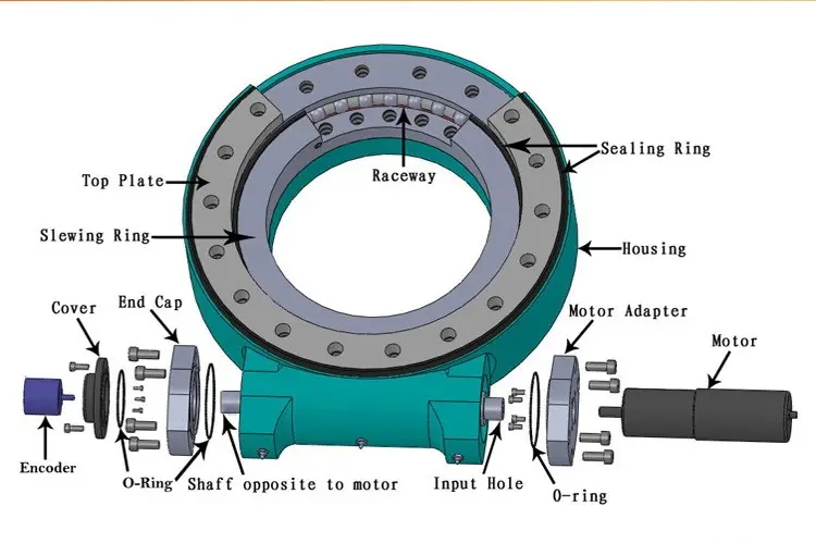 回轉(zhuǎn)驅(qū)動裝置的名稱很多,目前沒有統(tǒng)一的名稱。如稱:回轉(zhuǎn)齒輪裝置、回轉(zhuǎn)驅(qū)動裝置、回轉(zhuǎn)驅(qū)動裝置、回轉(zhuǎn)減速器、回轉(zhuǎn)驅(qū)動裝置等。該裝置由蝸桿、回轉(zhuǎn)支承、殼體、電機等部件組成?;剞D(zhuǎn)驅(qū)動基本上可分為單蝸桿傳動回轉(zhuǎn)驅(qū)動和雙蝸桿傳動回轉(zhuǎn)驅(qū)動。它以回轉(zhuǎn)支承為基礎(chǔ),傾覆力矩大,采用高耐磨蝸輪傳動。流暢的傳輸使用戶的設(shè)備具有更高的可靠性。采用蝸桿傳動,多齒接觸,可帶動較大負載,同時具有靜態(tài)自鎖功能。該裝置還可廣泛應(yīng)用于工程機械和新能源領(lǐng)域,如重型平板車、集裝箱起重機、