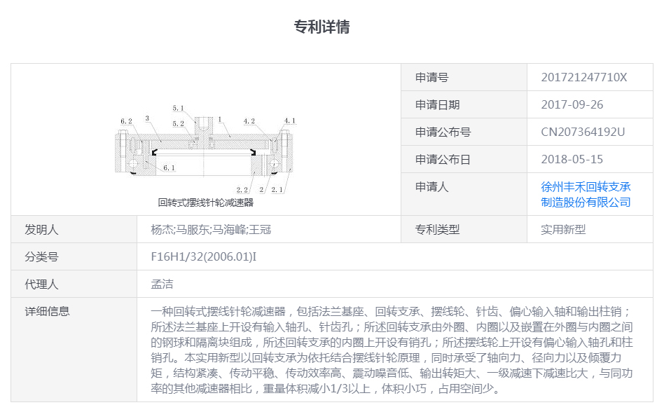 (專利號:CN207364192U)回轉(zhuǎn)式擺線針輪減速器