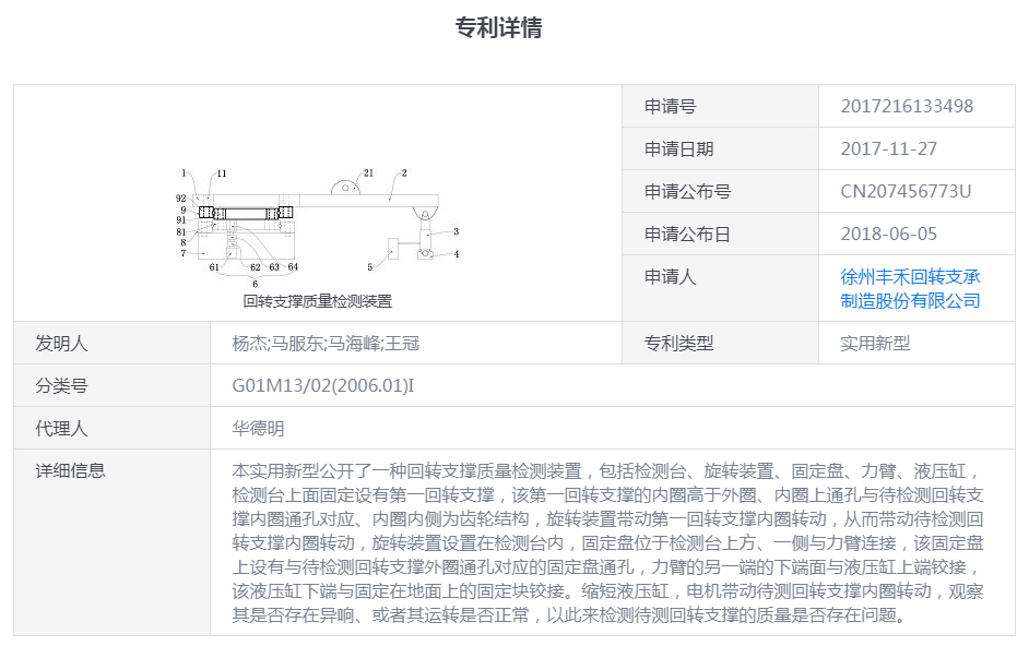 (專利號:CN207456773U)回轉(zhuǎn)支撐質(zhì)量檢測裝置